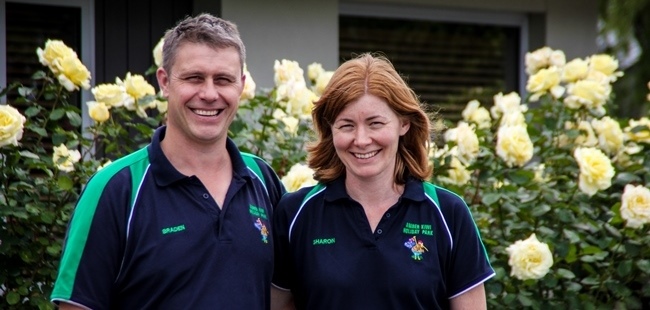 Braden and Sharon Lee, mber Kiwi Holiday Park and Motel, Christchurch - the 1000th business to sign up to the TSC. jpg 97 KB